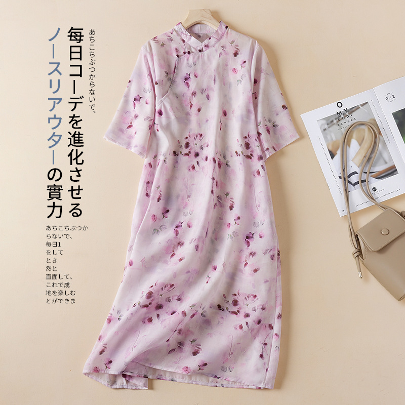スポット中国風ライトナショナルスタイルラミースタンドカラー改良チャイナドレス女性のレトロな斜め襟デザインスカート