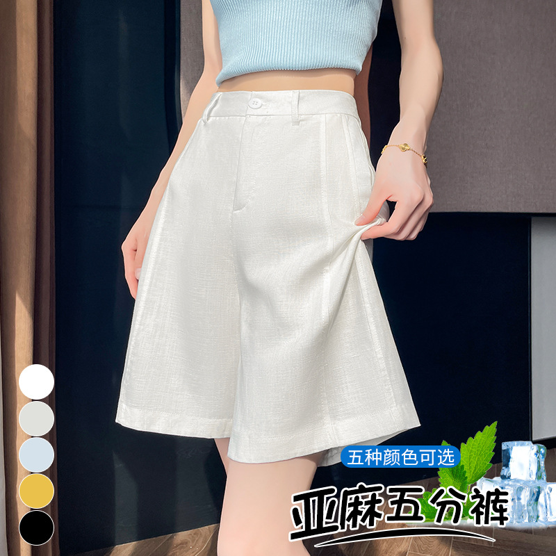 在庫あり 2025 夏新作 テンセルリネン 5点パンツ ワイドレッグ ハイウエスト コットンとリネンの薄いショートパンツ 女性用
