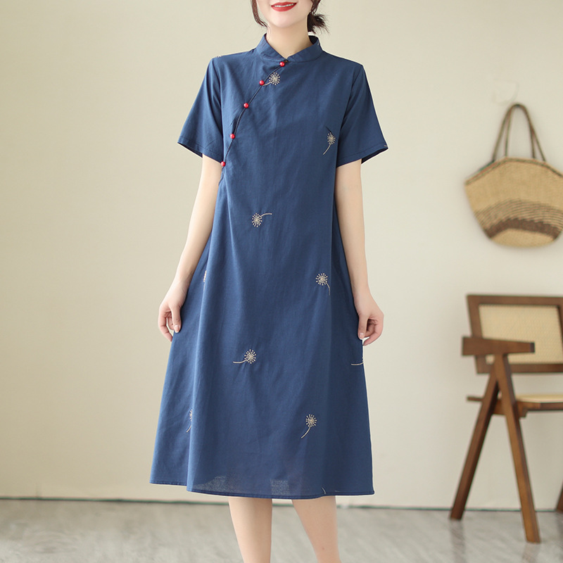 スポット一流大手ブランドの高級カットレーベル婦人服外国貿易輸出オリジナルリネンコットン刺繍フラワーチャイナドレス
