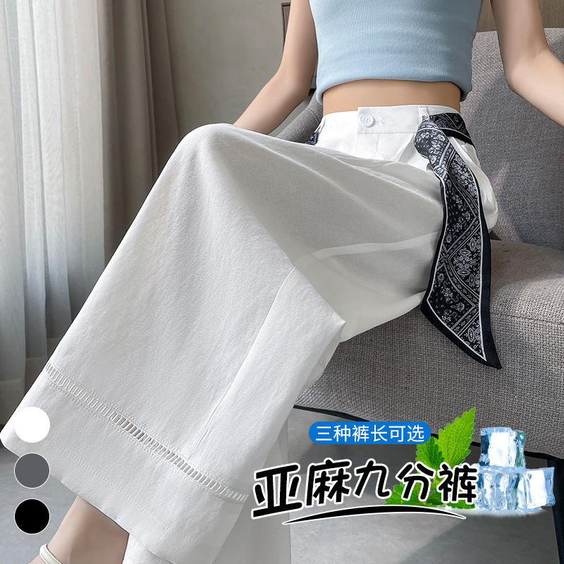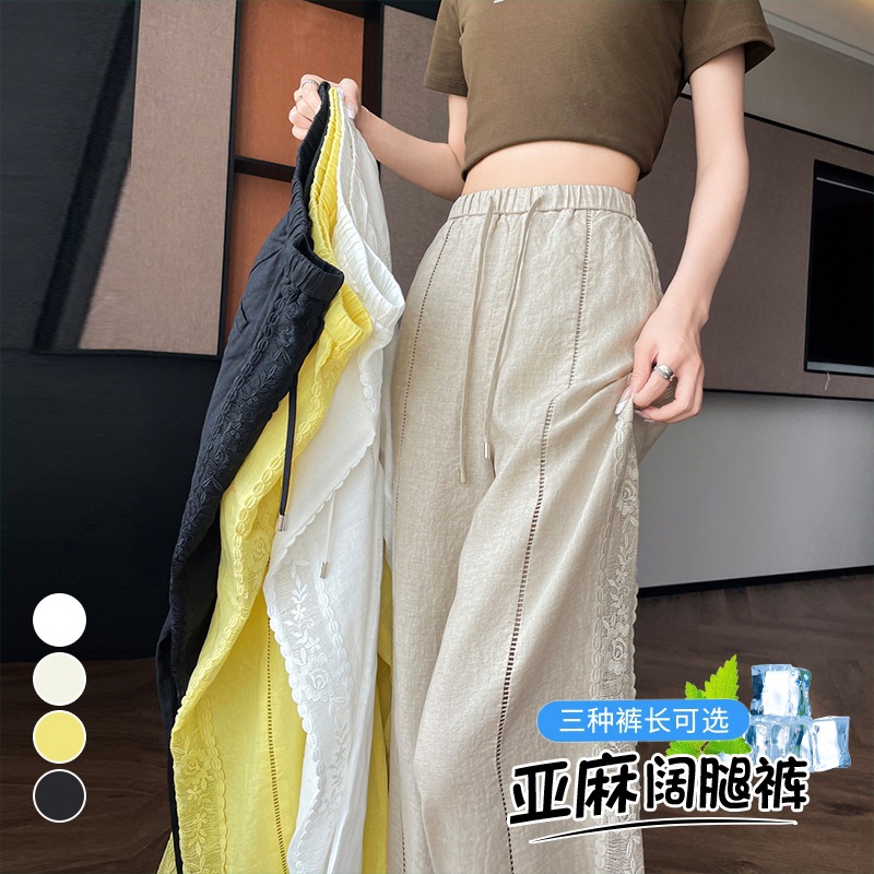 在庫あり 2025 夏の新リネン 9 点パンツアイスシルク日焼け止めレースハイウエストルーズカジュアルパンツ女性用