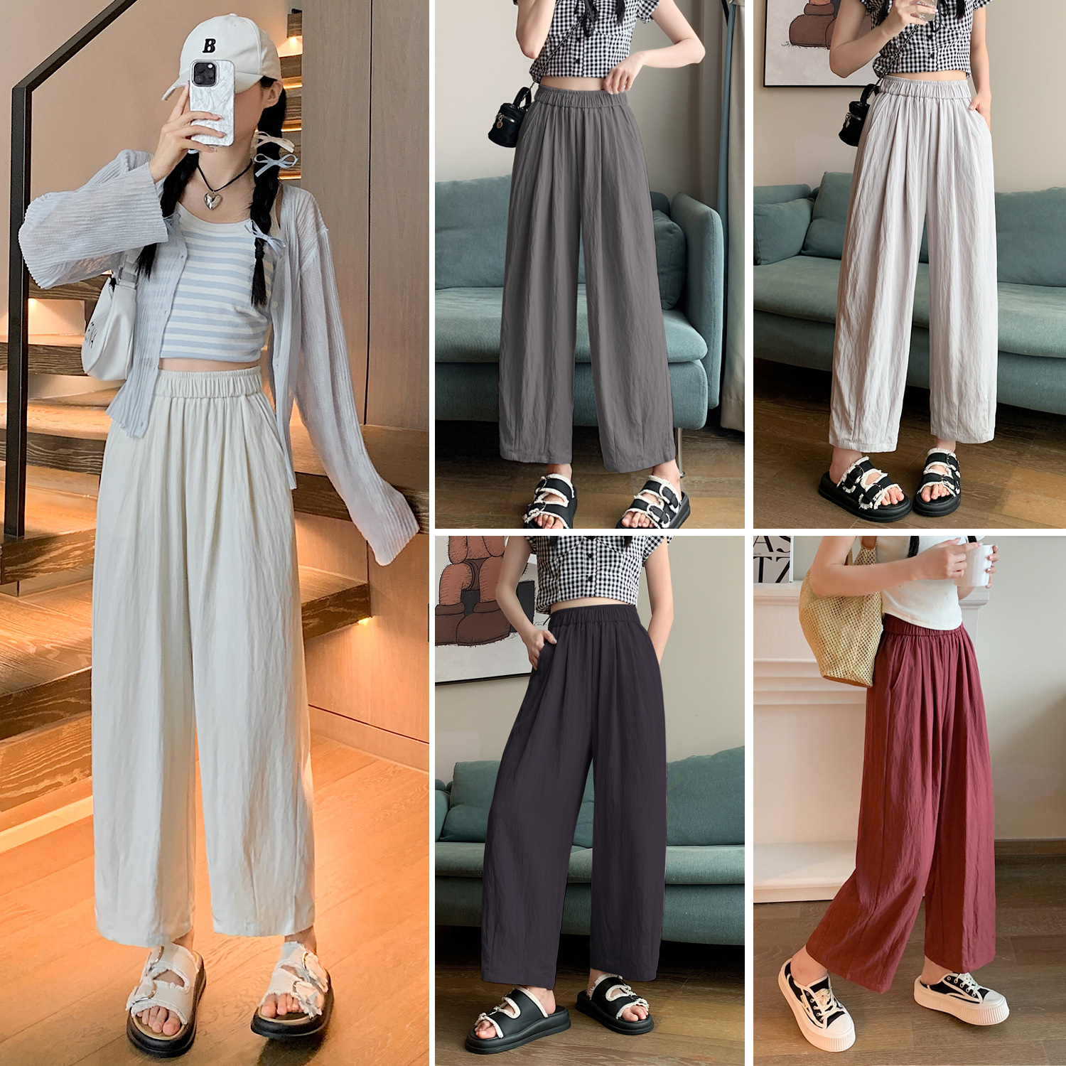 在庫あり 2025 夏の新作テンセルリネンワイドレッグパンツハイウエストカジュアルパンツアイスシルク日焼け止めフロアモップパンツ女性用