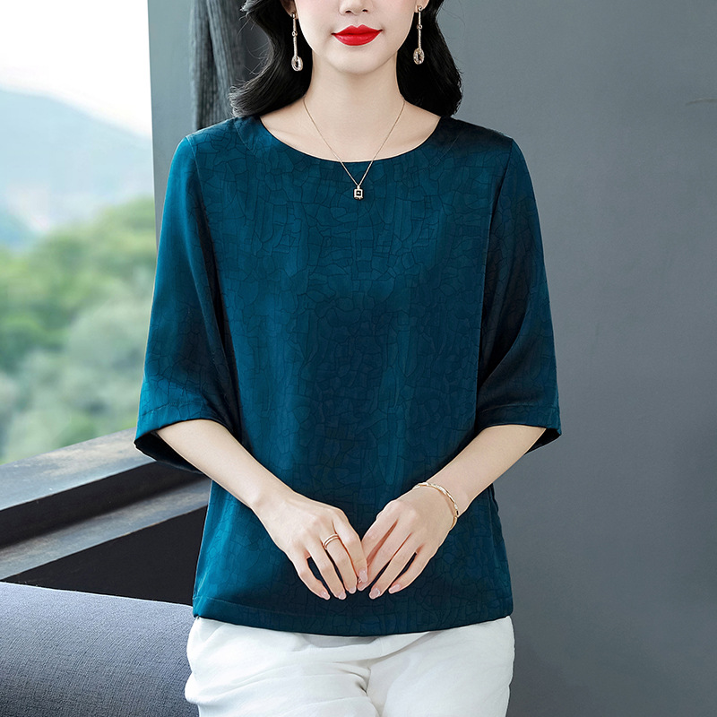 春夏既製品中年ママ夏服、シルクトップス、マルベリーシルクシャツ、中高年女性のゆったりシャツ