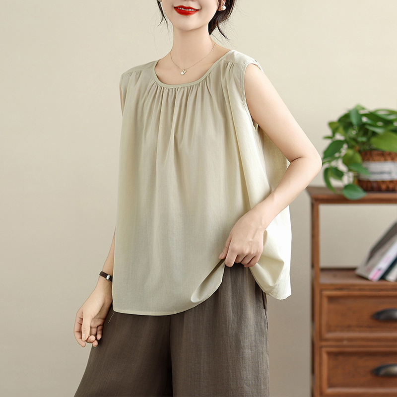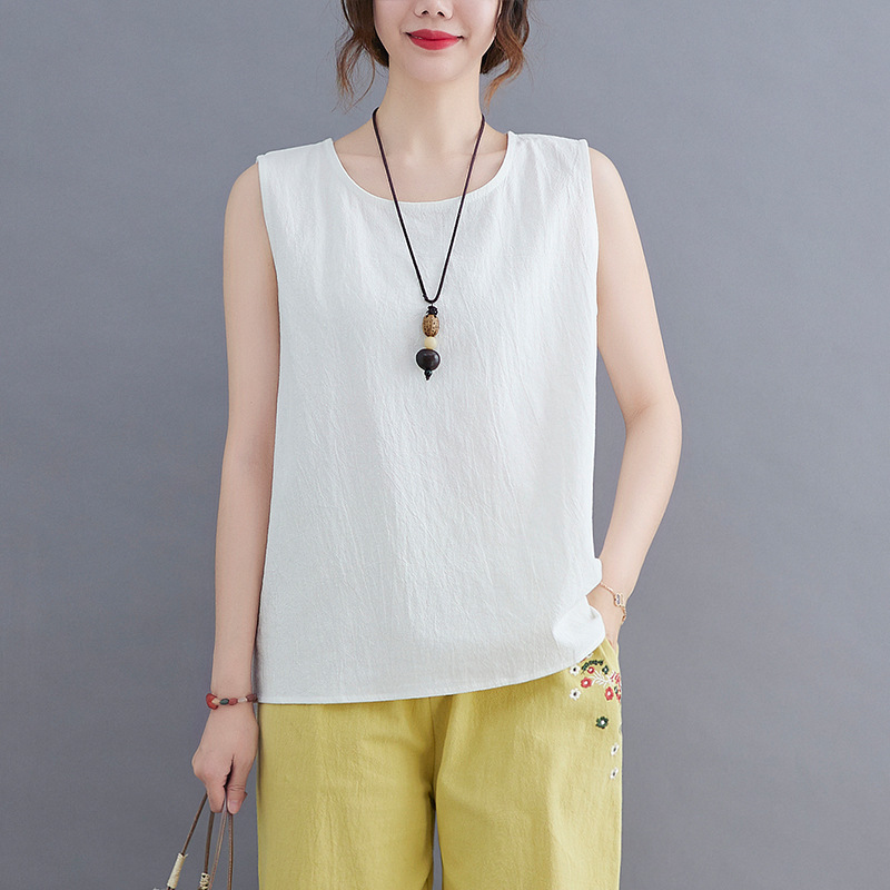 女性がアウターとして着用できる夏のカジュアルなコットンとリネンのベスト、ルーズなノースリーブのインナーレイヤリングシャツ