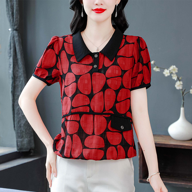 夏の新作、絶妙で美しいシフォンシャツ、半袖トップス、女性用の多用途でファッショナブルなスリムシャツが入荷しました。