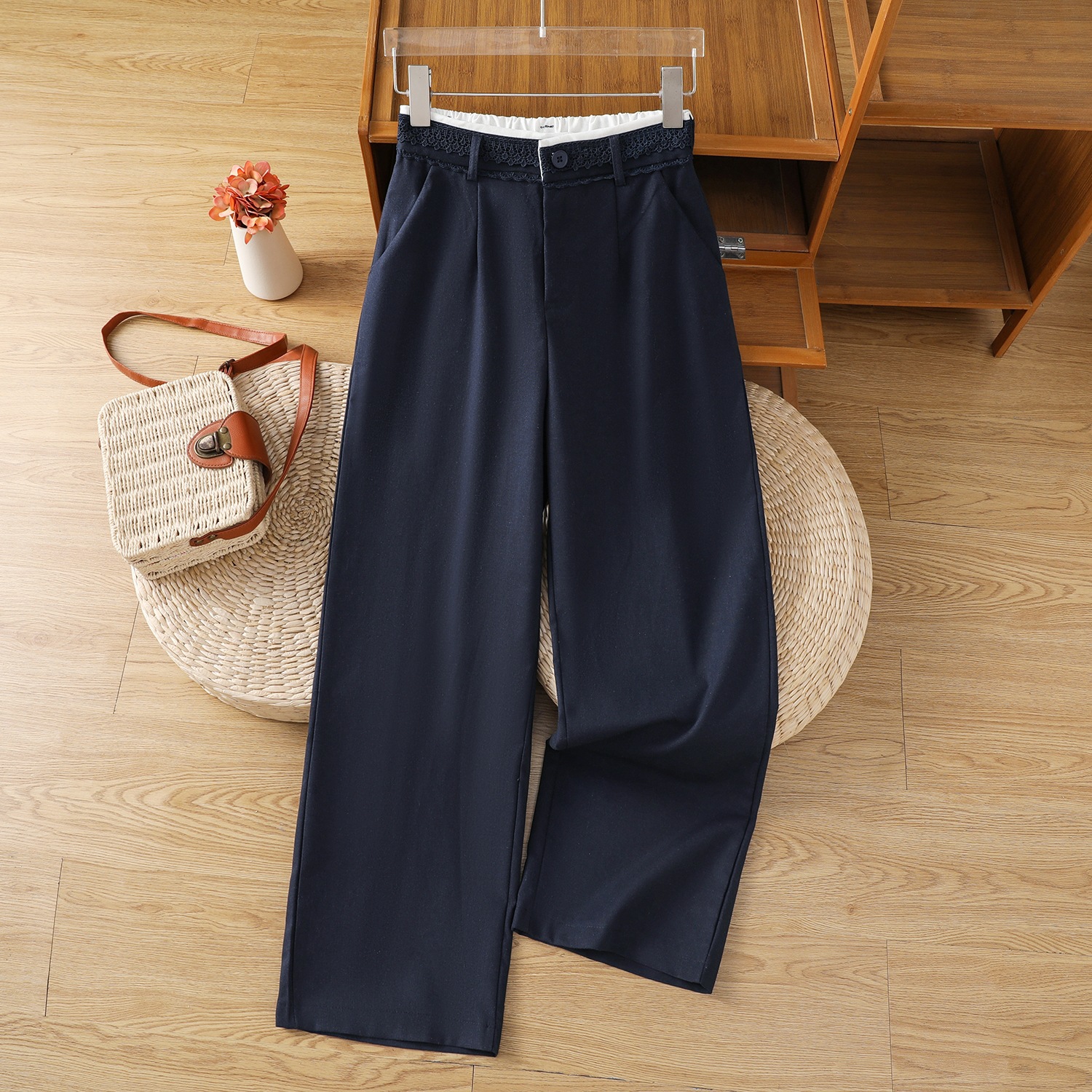 在庫あり 2025 新しいリネンワイドレッグパンツ女性の夏薄いドレープ日焼け止めパンツレースコットンとリネンストレートパンツ