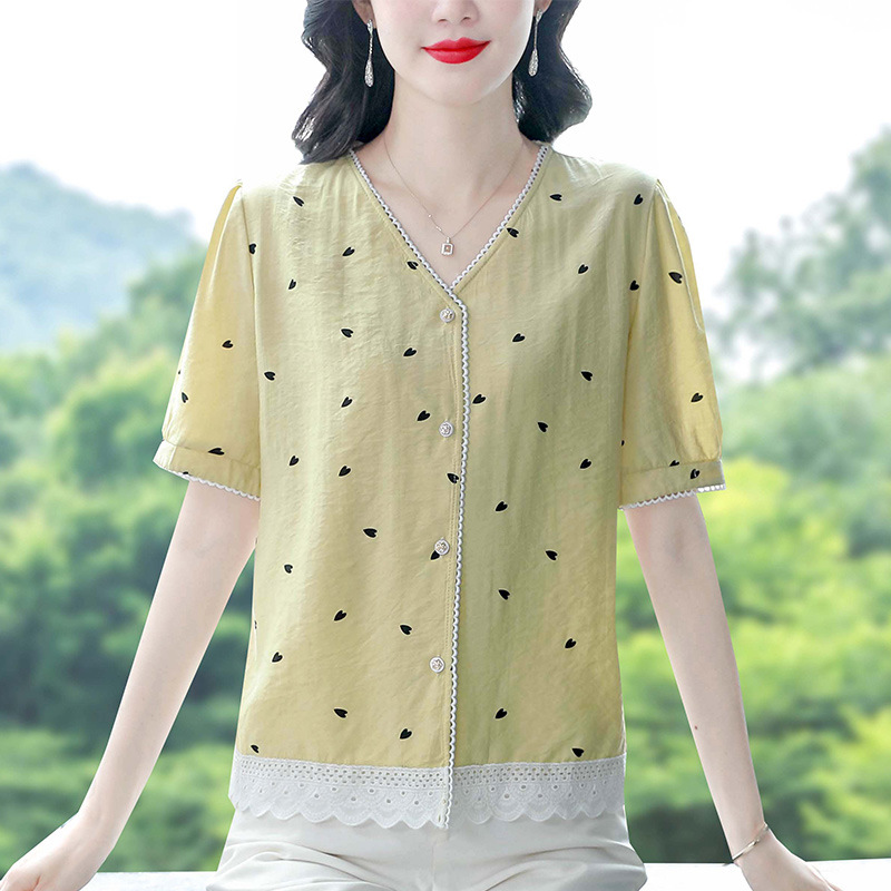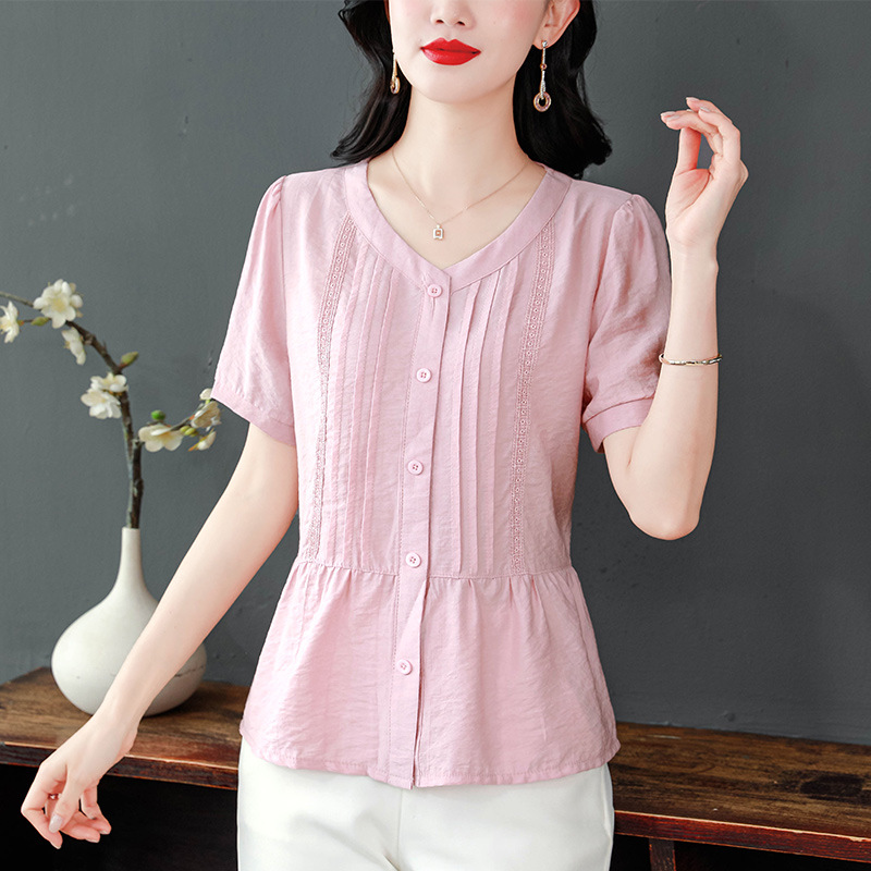 夏の新作襟付きコットンとリネンのトップス、カーディガン、半袖レディースレースファッション、万能ママ服