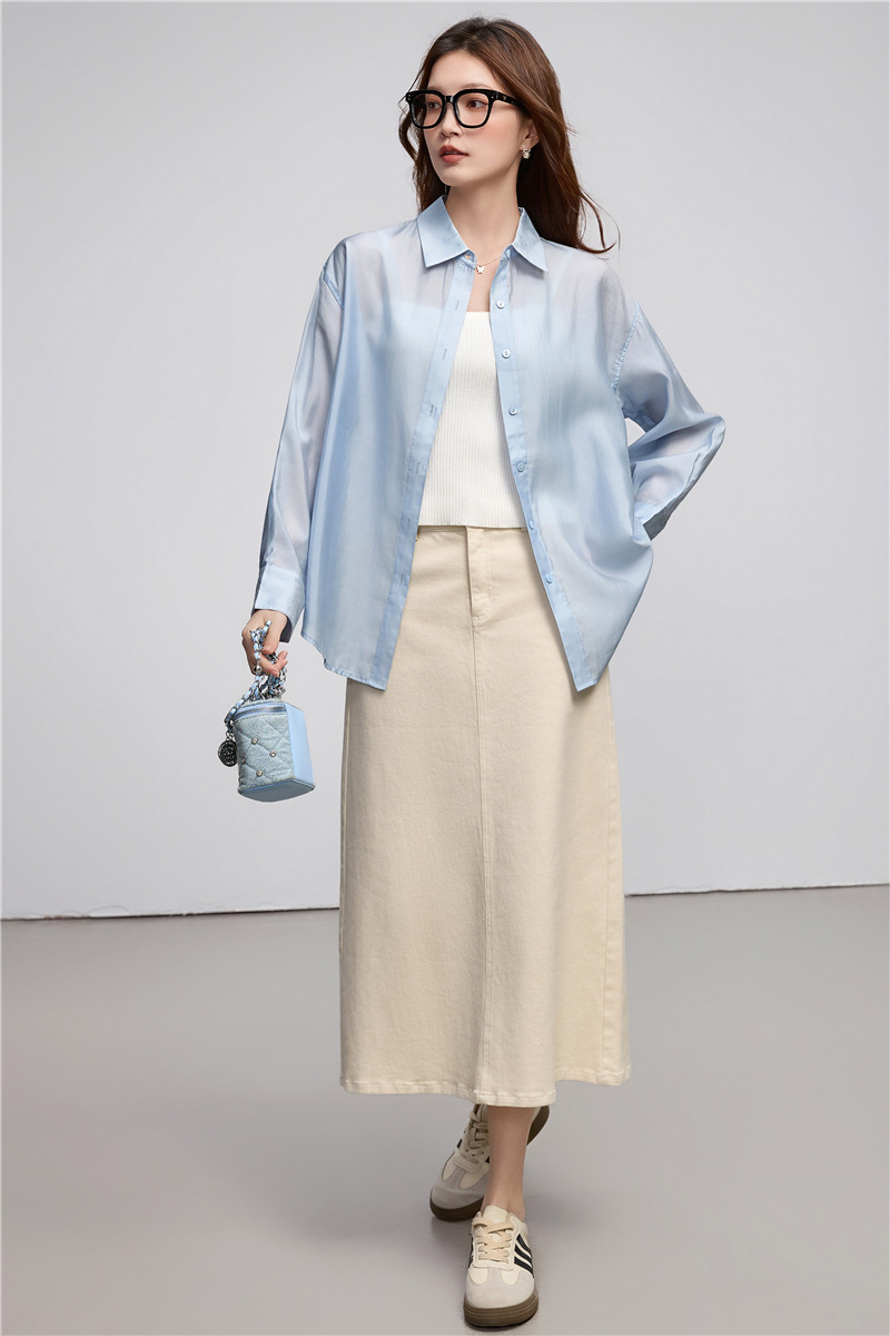 在庫あり 2025 春夏 ホワイト テンセル シャツ レディース ルーズ デザイン レイジー スタイル シースルー 日焼け止めシャツ