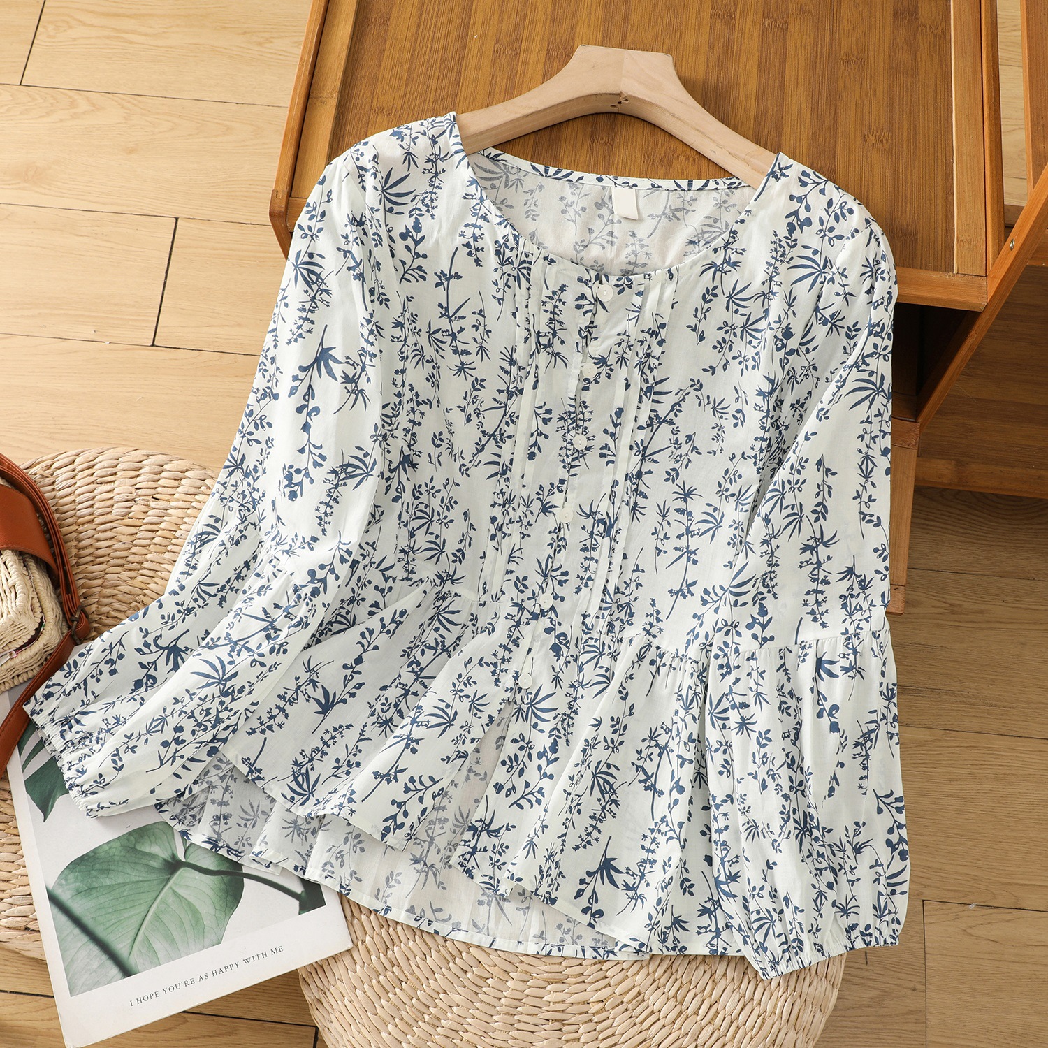 スポット春ドット年齢軽減シャツ文学レトロ長袖シャツレディーストップス