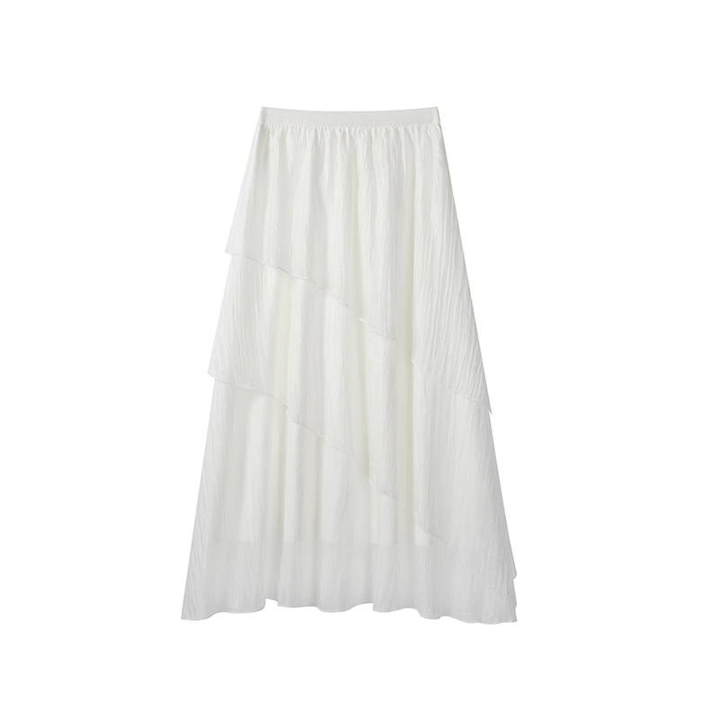 スポットビデオフレンチイレギュラーフリル花柄スカート2025夏ハイウエストスリムシフォン水玉ロングスカート