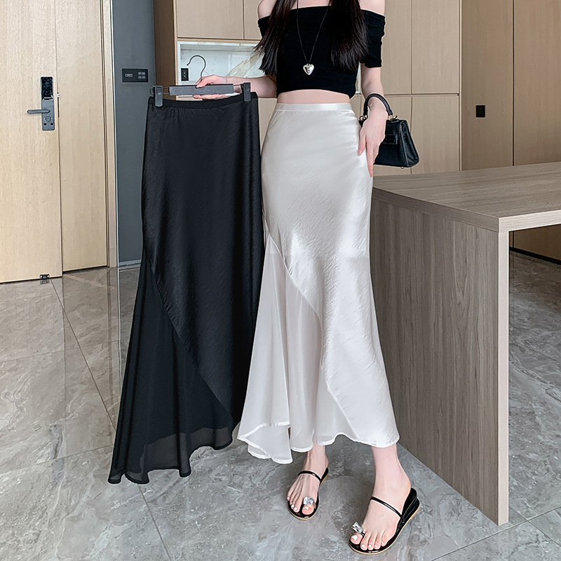 スポットビデオアセテートサテンレーススプライシングスカート2025春夏新作スリムフィットヒップカバースカート