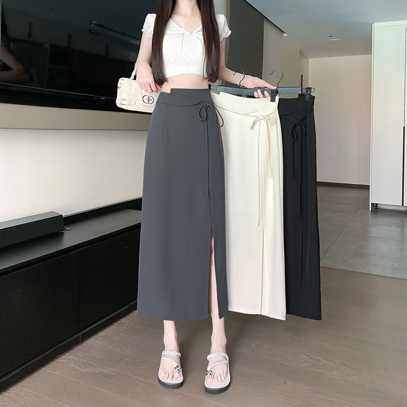 スポットビデオ不規則スーツスカート2025レースアップハイウエストワンステップスカートサイドスリットヒップカバーロングスカート