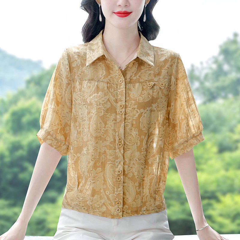 夏の新作シャツ、ゆったりとした大きいサイズのママ服、おしゃれで美しい万能シフォンシャツ、レディース半袖トップス