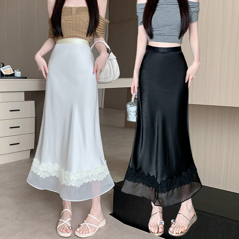 スポットビデオレースアセテートサテンスカート2025ハイウエストスリムドレープフィッシュテールスカートロングスカート