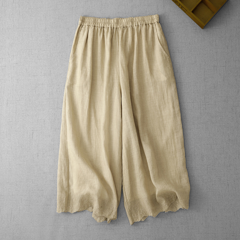 在庫あり 2025 新しいスタイルのレース刺繍 7 分ワイドレッグパンツクールカジュアル快適な女性のパンツ