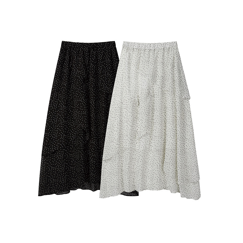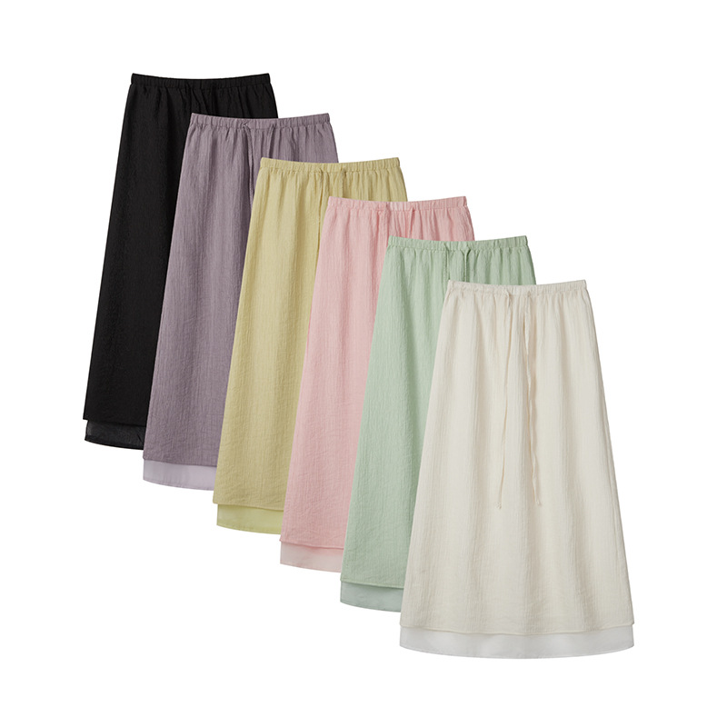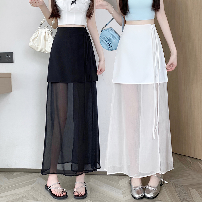 在庫あり+ビデオ+3つの標準ニッチハイウエストストラップカジュアルスカート女性用無地シフォンカバーヒップミドル丈スカート