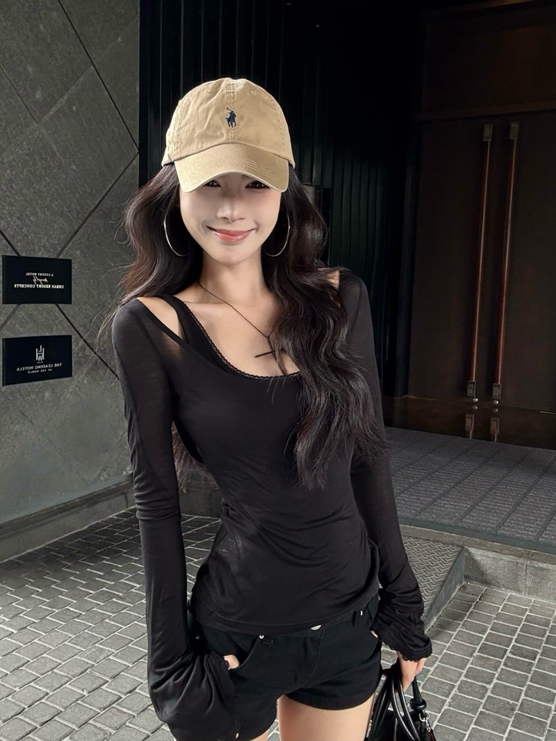 ホットガールセクシーレースカラースリムベスト+フード付き薄手日焼け止め長袖シャツセット