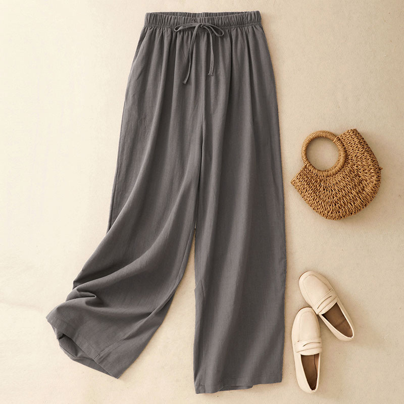 在庫あり·2025新作綿麻ルーズ・ウエストゴムワイドパンツドレープカジュアルストレートパンツ女性用