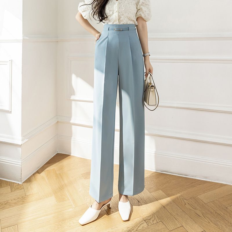 秋の女性用ストレートレースアップスーツパンツ、小柄な人向けのハイウエストワイドレッグパンツ、カジュアルパンツ