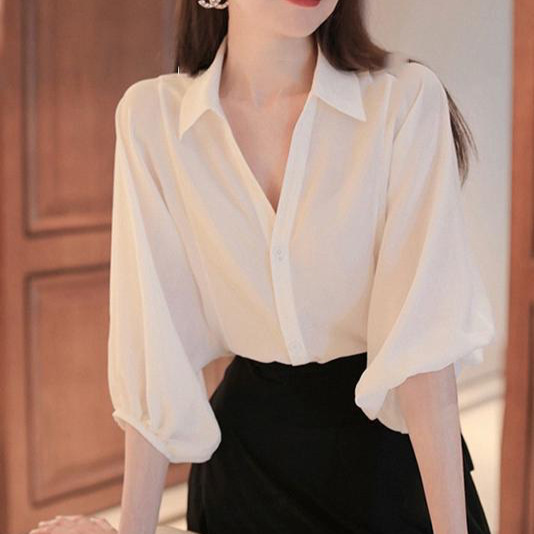 シンプルな女性のシャツはゆったりした雰囲気があります。