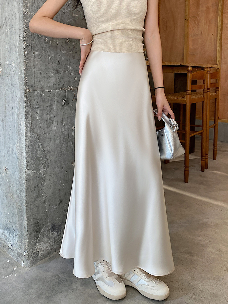白い酢酸のサテンの半身のスカートの女性の春夏の新型の2025の中で長いタイプは尻の魚の尾のスカートの気質の字のスカートを包みます。