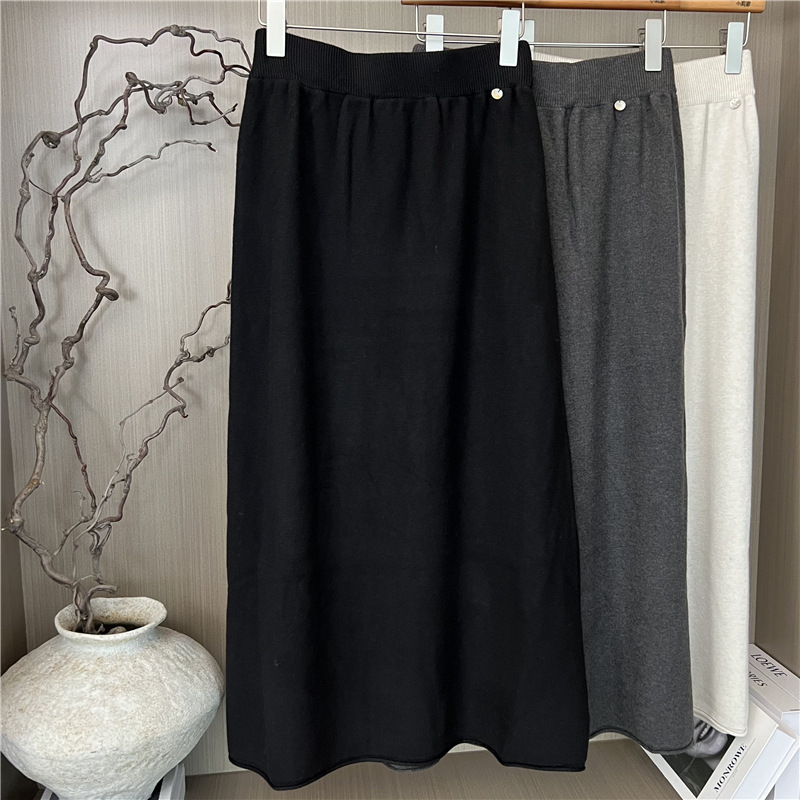 ニットの半身のスカートの女性の2024秋の新型の高い腰はやせています。