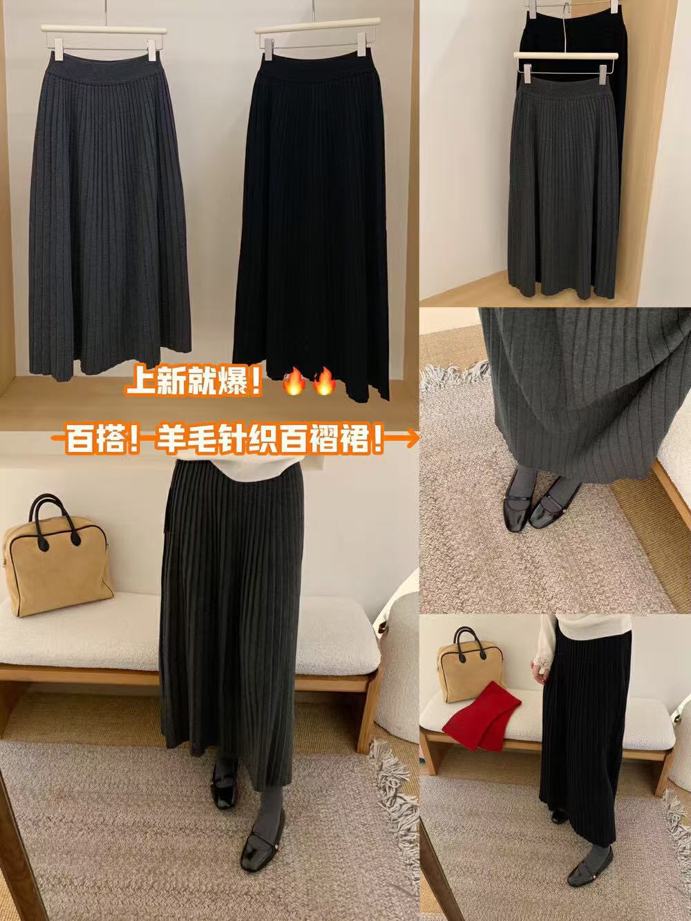 2024秋冬の爆発的な高品質の抵抗球ウール混紡ニットのスカートの女性