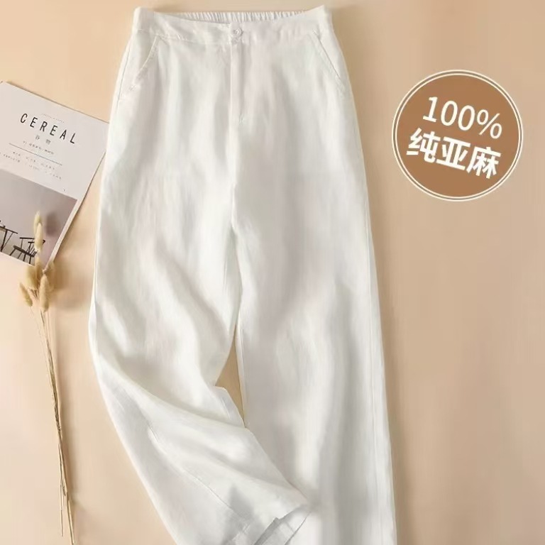 ピュアリネンルーズワイドレッグレディースパンツ2025新作薄手コットンとリネンドレープハイウエスト9点スリムカジュアルストレートパンツ