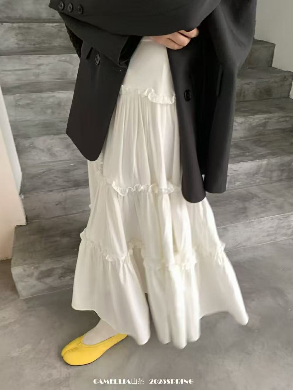 2025夏の新型バレエのしわの設計のショートスカートは腰を緩めて光の字の半身のスカートを離れないようにします。