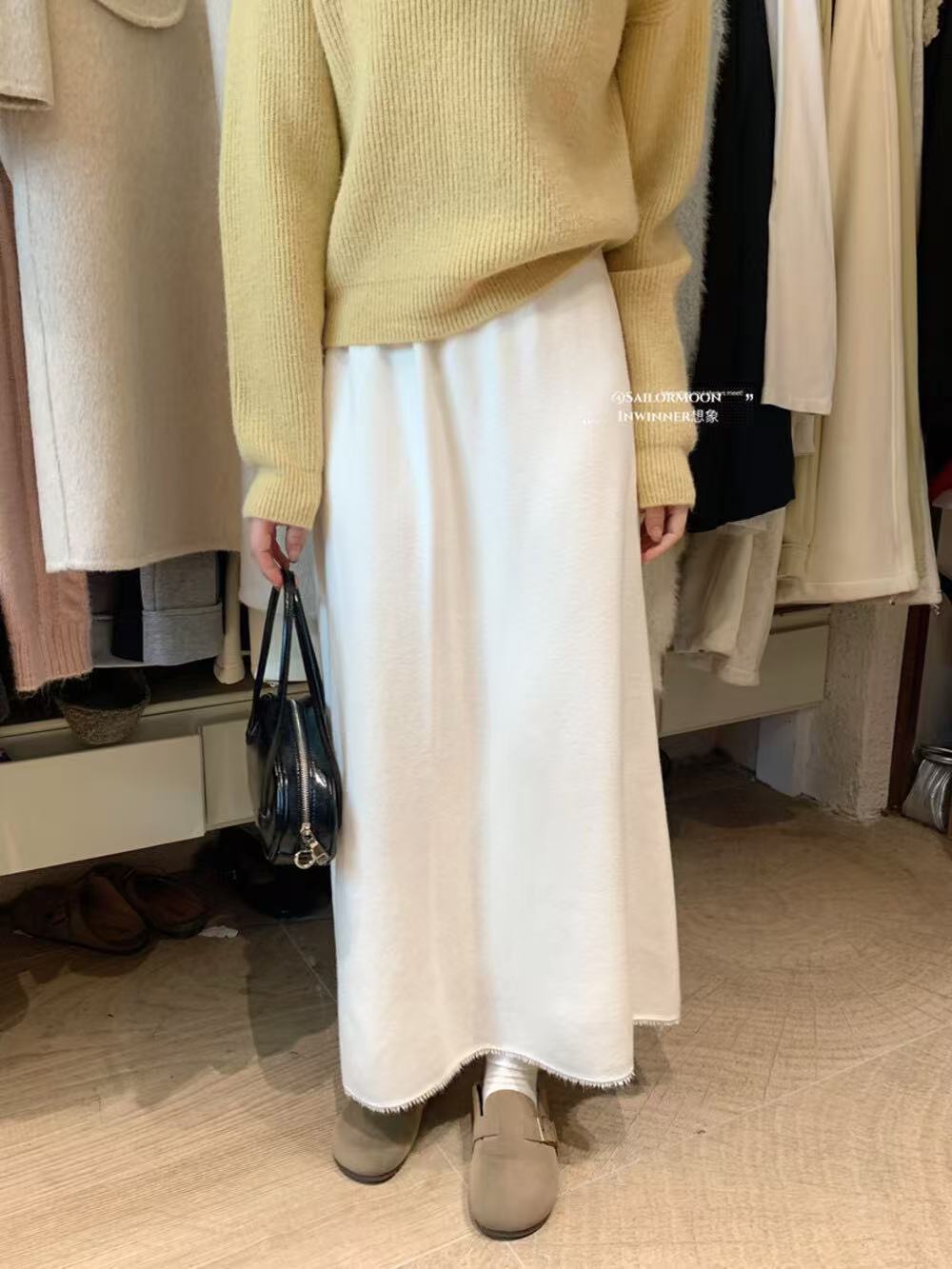 2024秋冬の長いタイプのカジュアルな風の垂直感の純色のスカートの小さいフリンジロングスカートの女性