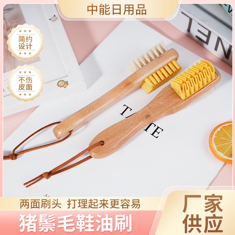 実木豚毛清潔看護ブラシ家庭用多機能革具看護汚れ除去軟毛靴ブラシ清潔豚毛ブラシ