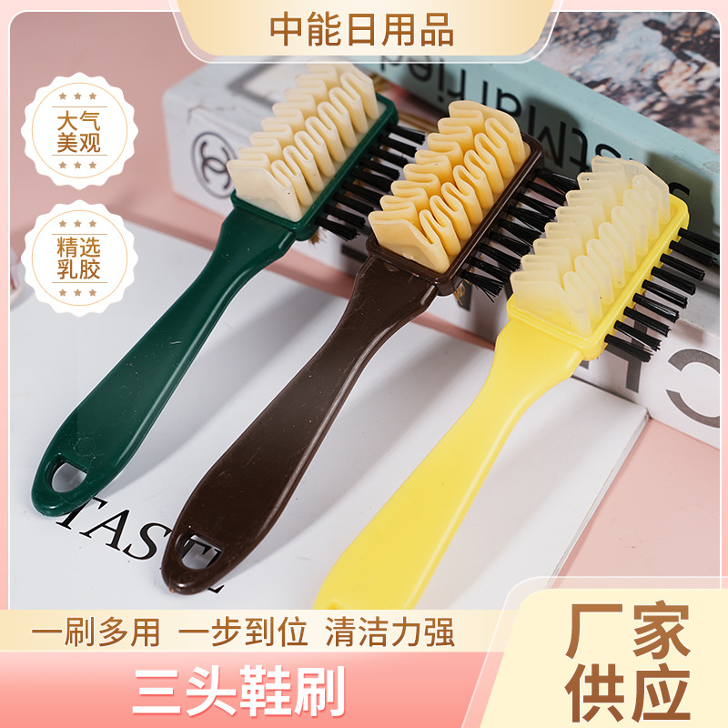 スエードの毛皮のブラシの三面の靴のブラシは清潔で汚れを落とします。