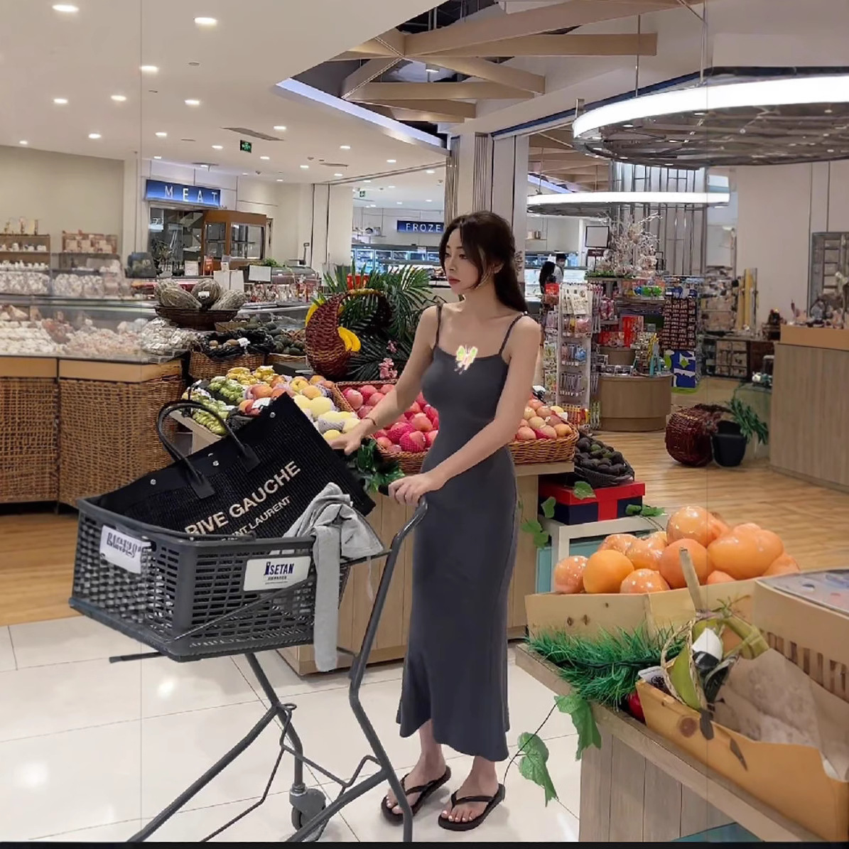 秋と夏の女性のための黒のセクシーなサスペンダードレス、ウエストがタイトでスリム、ミドル丈の小さな継母のヒップカバーフィッシュテールスカート