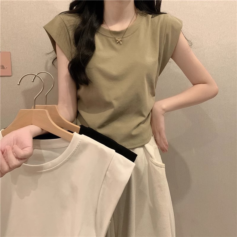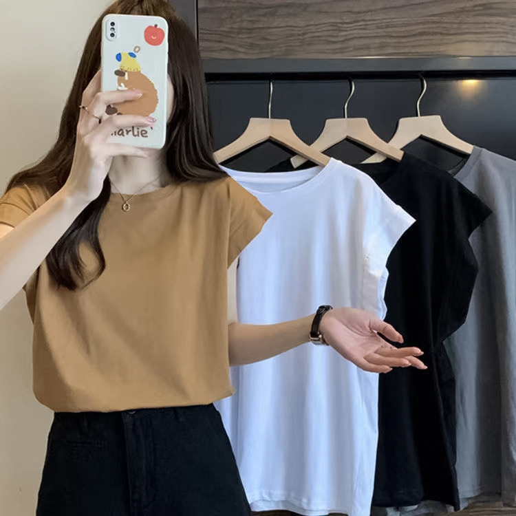 デザインされた小さなフライングスリーブ Tシャツレディース 2025 夏の新しいルーズアウターボトリングシャツ半袖学生トップトレンディ