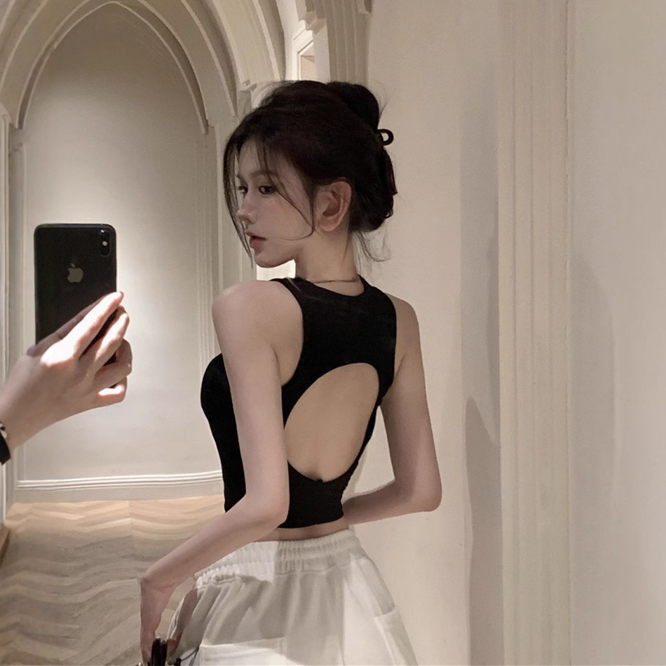 Sweet Hot Girl バックレス中空 I 字型ベスト女性の夏のデザインノースリーブ美しい背中セクシーなショートサスペンダートップ