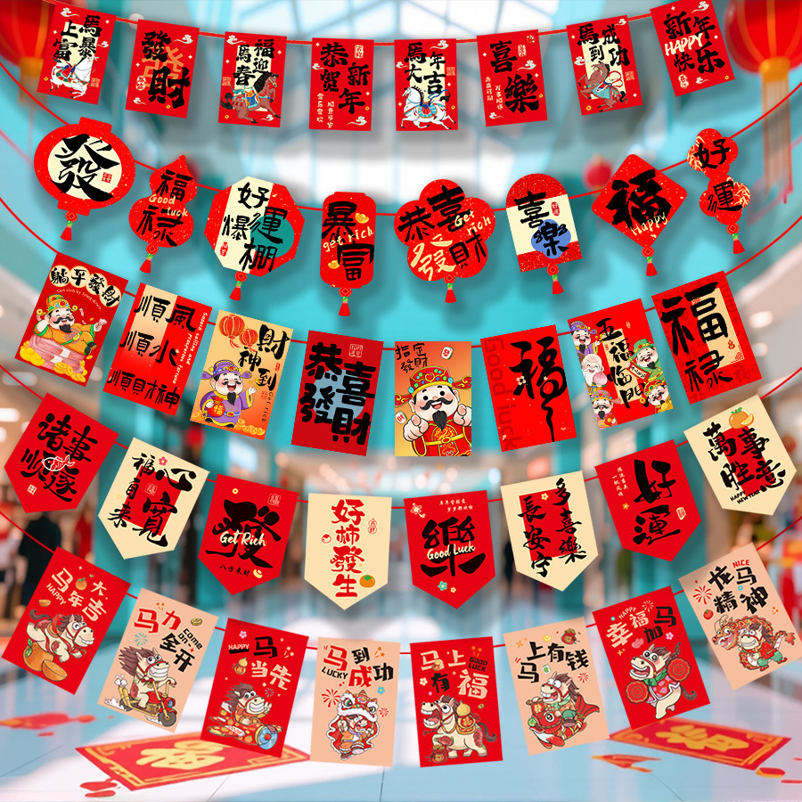 2025年旧正月装飾旗吊旗蛇年彩旗デパートスーパー学校会社年次総会シーン配置