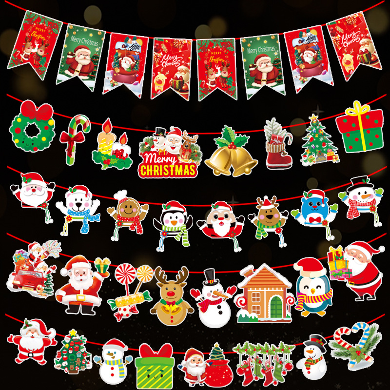 2024対外貿易新クリスマス拉旗幼稚園店クリスマス雰囲気配置旗彩旗国境を越えた