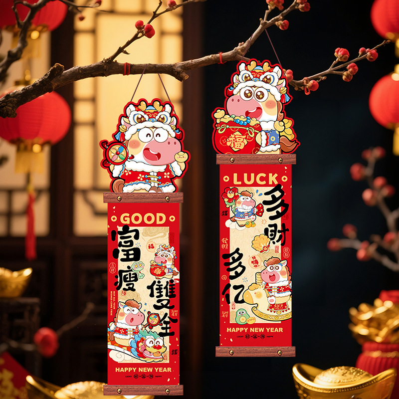 2025蛇年新年飾り掛け幅旧正月通路廊下玄関漫画福字ストラップリールプレゼント用