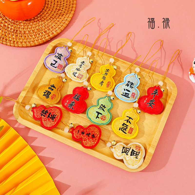 古代風のひょうたん小袋、美しい祝福、祝福小袋、中国風車載文化的および創造的な小さなペンダント、お土産