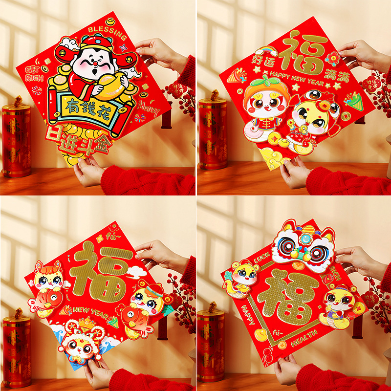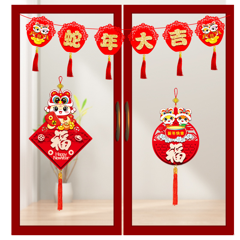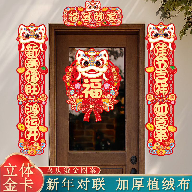 2025蛇年立体春福対聯新年旧正月入戸装飾用品アニメ対聯セット植毛