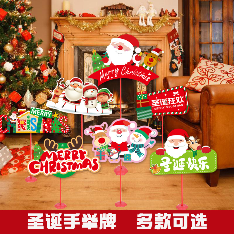 クリスマスの手でカードを持って幼稚園の写真を撮ります。