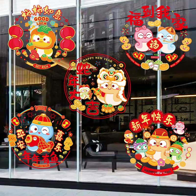 2025蛇年正月ガラスシール旧正月配置窓貼りガラス扉装飾用品超静電貼り