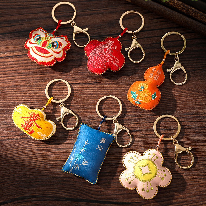 金の手縫いの立体的な香り袋のキーホルダーのペンダントの香り袋の財布の祝日の贈り物の車のペンダントは平安福袋を祈ります。