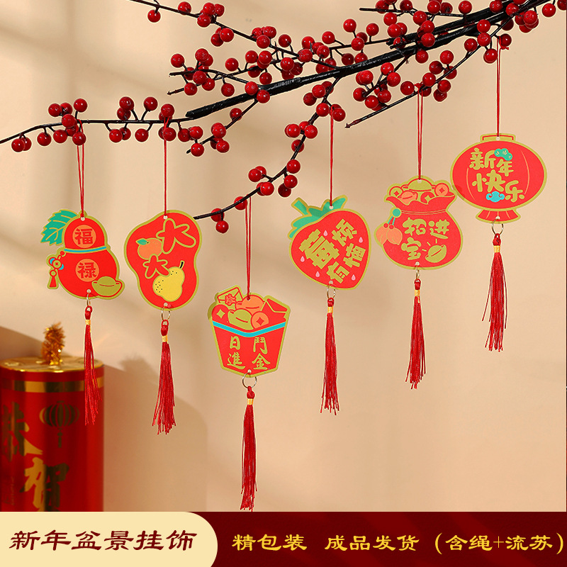 新商品盆栽装飾ペンダント新年春節盆栽緑植掛け飾り元旦喬迁雰囲気配置国風掛け飾り