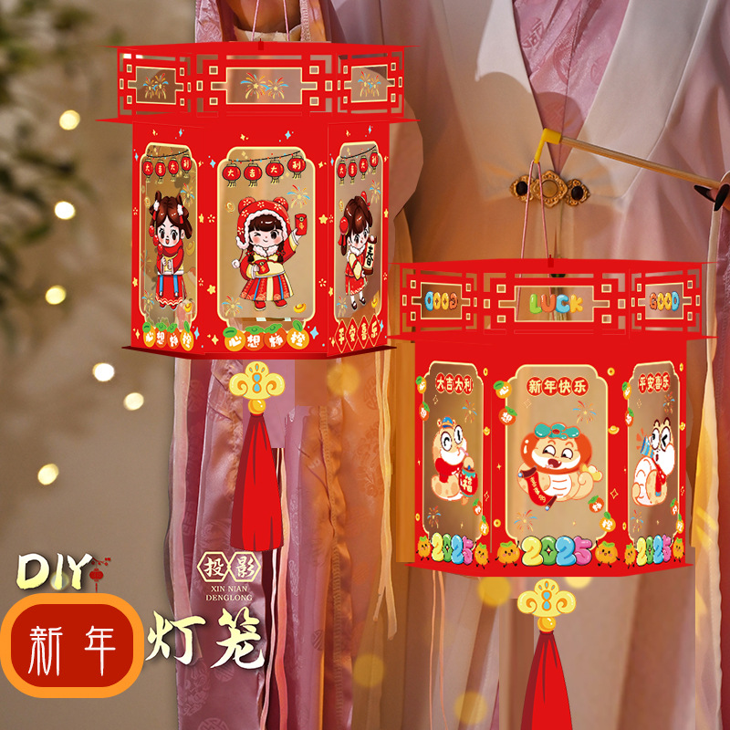 新年提灯材料包子供手作りDIY手提げ宮灯古風装飾漢服PVC元宵走馬灯