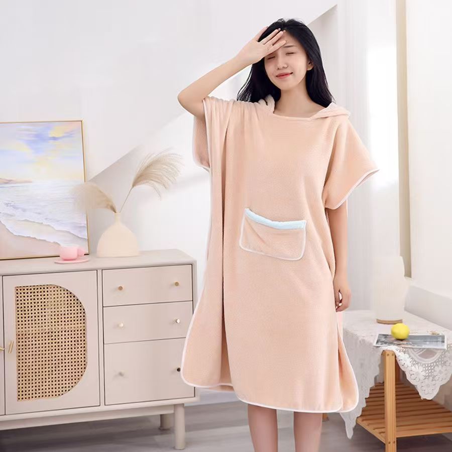大人が着ている厚手のバスタオルのパジャマは柔らかくて吸水できません。