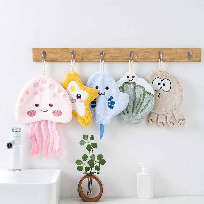 掛け式子供タオルサンゴの毛の四角タオル刺繍ハンカチキッチントイレ雑巾吸水二重タオル