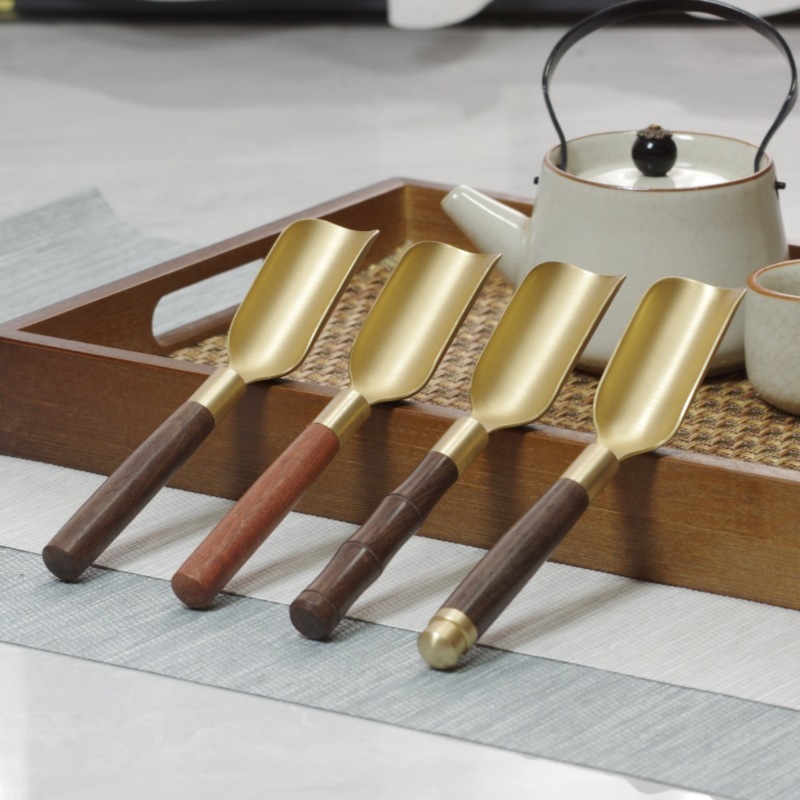 真鍮ティースプーンカンフーティーセットアクセサリーハイエンド茶道六君子家庭用ティープル純チタンティースプーンティースプーンティーシャベル