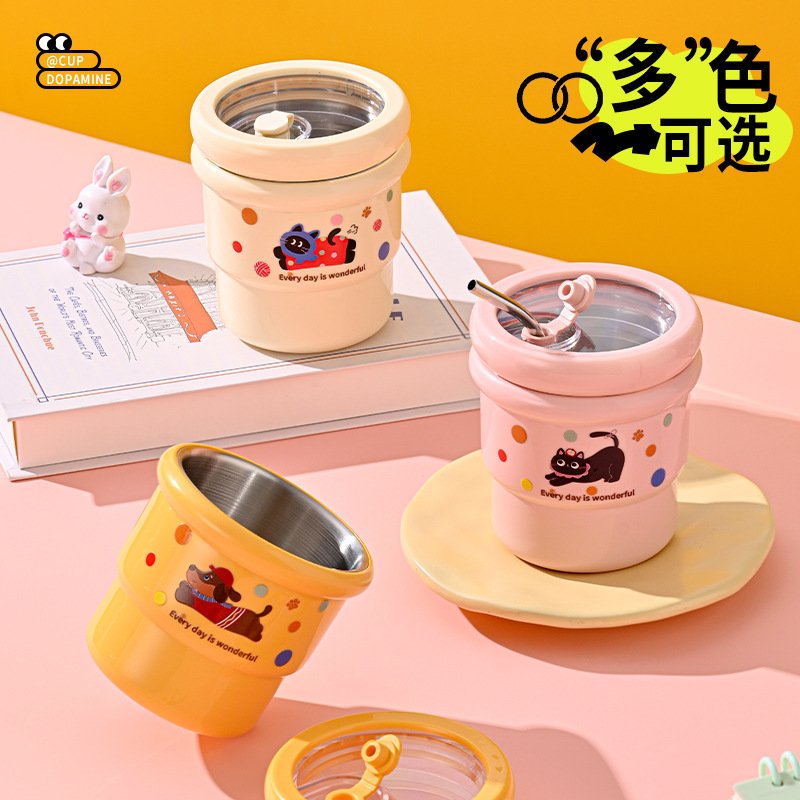 新しい高品質 304 ステンレス鋼のコーヒーカップ二重層抗火傷ハンドカップ漫画かわいいオフィスストローカップ