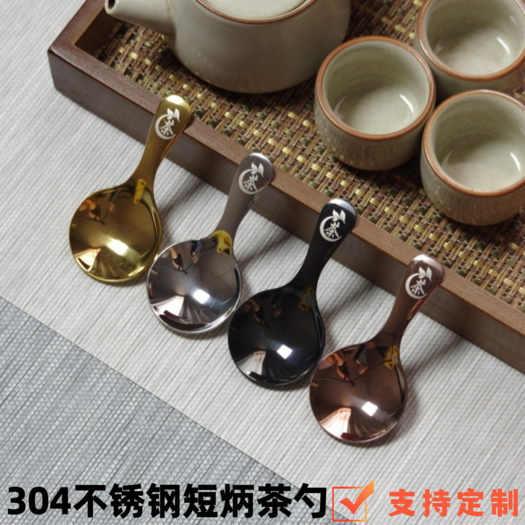 304 ステンレス鋼ティースプーン茶スプーンカンフーティーセット茶道六紳士アクセサリーティーテーブルショートハンドルティースプーン卸売