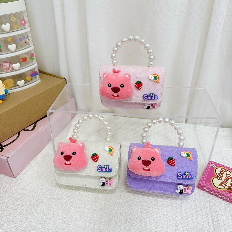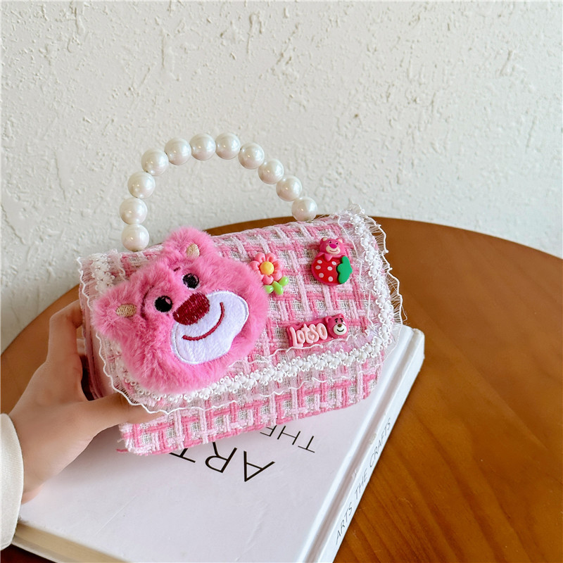 アニメいちご熊児童小香風シングルショルダーバッグかわいい少女韓国版甘い真珠手提げ斜め掛け小包